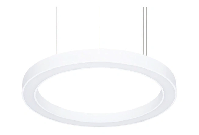 The HALO, a captivating LED luminaire in a modern ring shape, elevates both aesthetics and functionality in any indoor environment. Offering an impressive output of up to 129Ll/Cw and 8230 delivered lumens in three different body sizes, it seamlessly integrates into various spaces. Choose from either the standard PMMA opal diffuser or the matt micro-prismatic for superior glare control. The HALO is housed in a robust steel finished in a sleek white (RAL 9003S), with custom colour options available upon request.